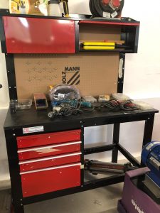 24056 – Pz. ) Werktisch mit Oberschrank 2 Türen 4 Laden mit wenig Werkzeug in Laden 1,20×0,60×1,80m