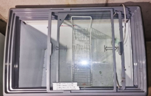 25063 – Pz. 6) Tiefkühltruhe mit Glasschiebedeckel „Barf Dog“ mit Räder, RIO S 100, 190 dm³, 220-240V, 280W, Ser. Nr. 333454 00000172, Isolierung 7 cm, Aussenmaß: 0,98×0,65×0,90m