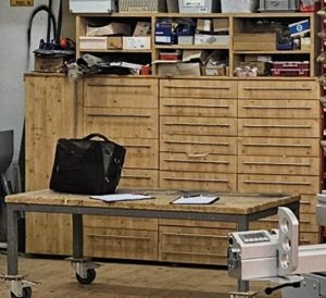 25061 – Pz. 66) Holzschrank mit 26 Laden 1 Türe, 6 Fächer 2,30×0,60×1,80m