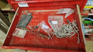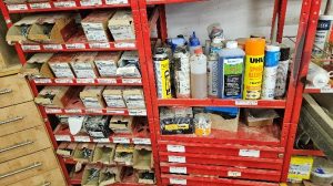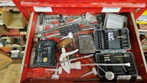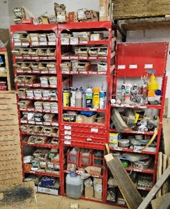 25061 – Pz. 70) Würth Regal 3 Abteilungen mit diversen Fächern und 4 Laden