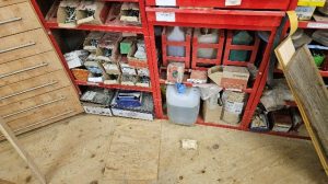 Pz. 72) Posten diverse Flüssigkeiten, Kleber, Silicon, Schleifmittel, Lacke, Bohrer, Schußnägel usw