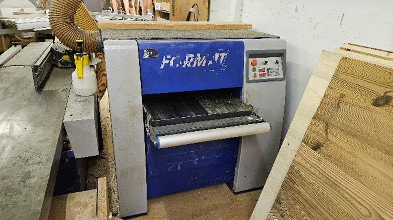 25061 – Pz. 43) Breitbandschleifmaschine Finish 1302, Bj. 2010, Schleifbandbreite 1,30m 29,5 kW, 56,0A, 400V Bj. 2010, Nr. 54.07.06, Gr. 1,90×1,80×2,30m, Pz. 56) Posten